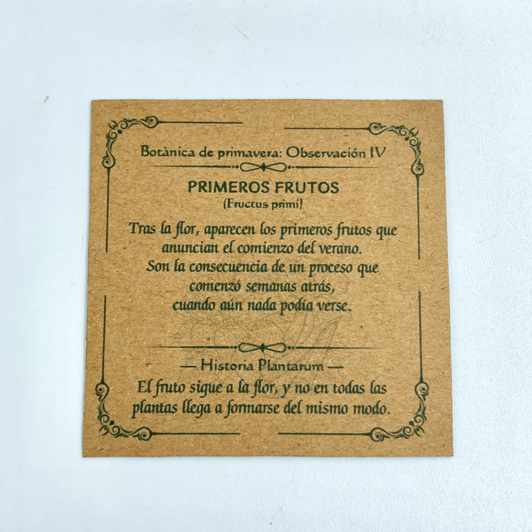 Incluye caja de madera con ilustración temática grabada, y tarjeta botánica.