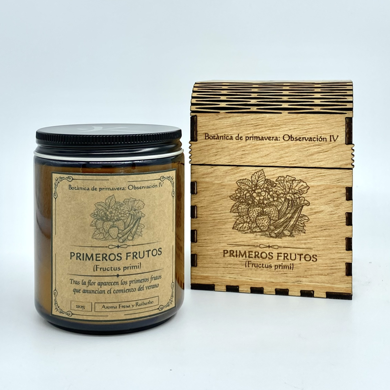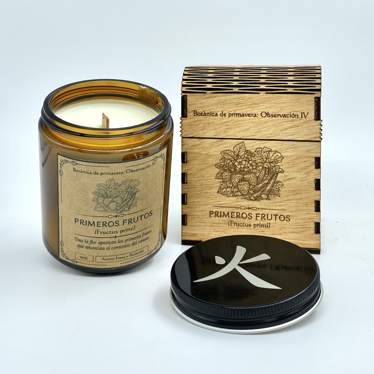 Esta vela recoge ese momento, un aroma fresco donde las notas ácidas y verdes del ruibarbo se combinan con la dulzura ligera de la fresa, dando lugar a una fragancia viva y bien definida. Un aroma que mantiene la frescura propia de los primeros frutos, aún alejados de la madurez del verano.